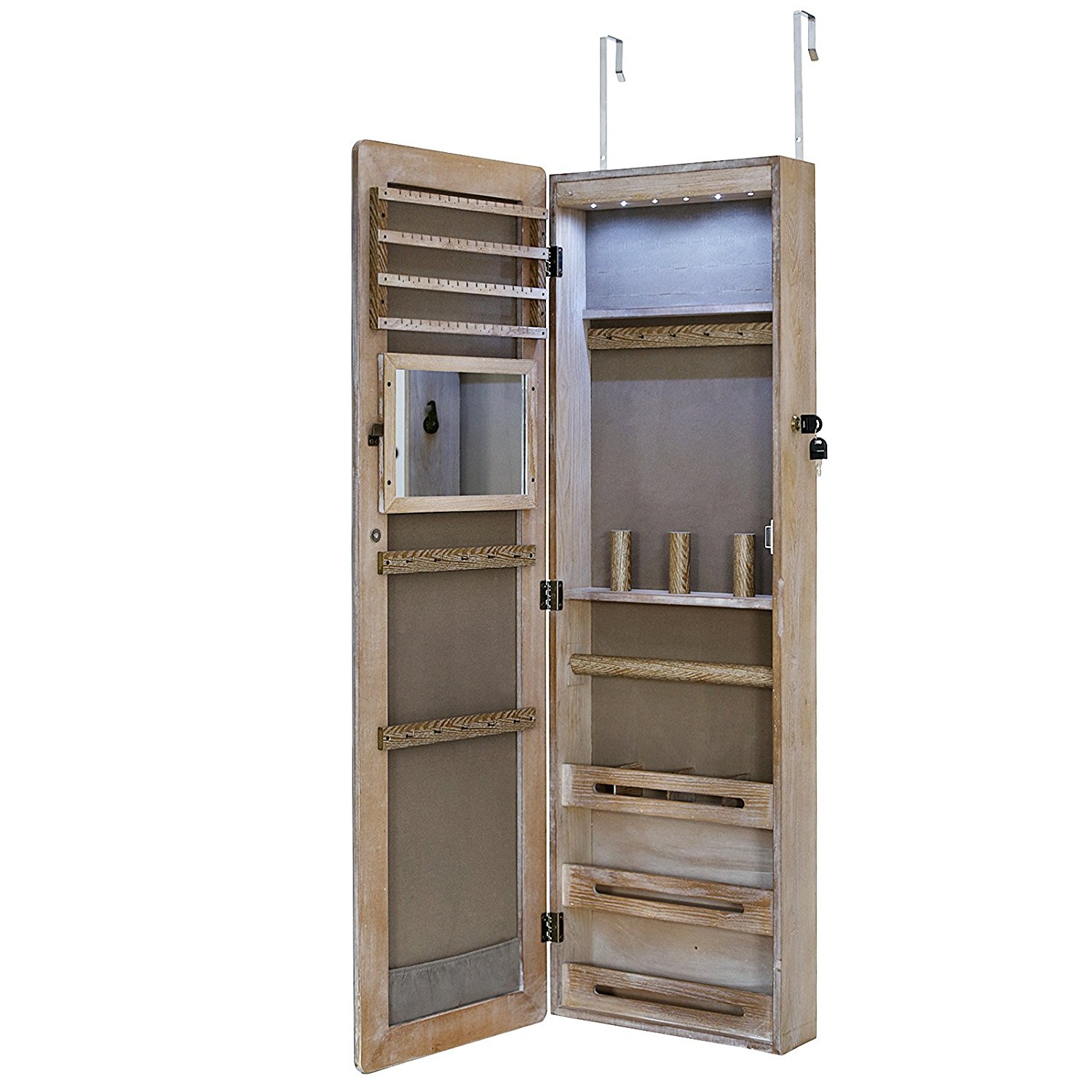 SONGMICS LED Armoire à Bijoux Psyché Murale Suspendue Couleur de bois naturel