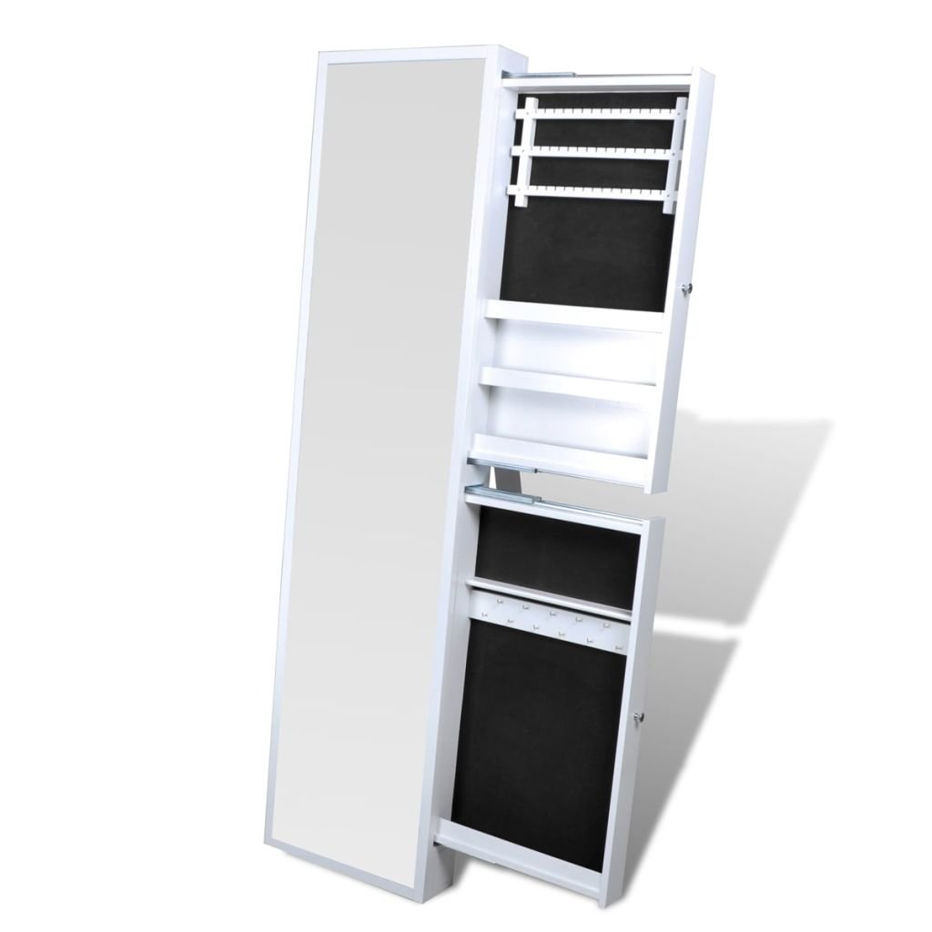 Armoire à bijoux blanche avec miroir et 2 tiroirs miroir sur pied